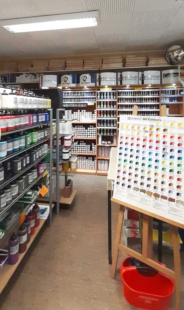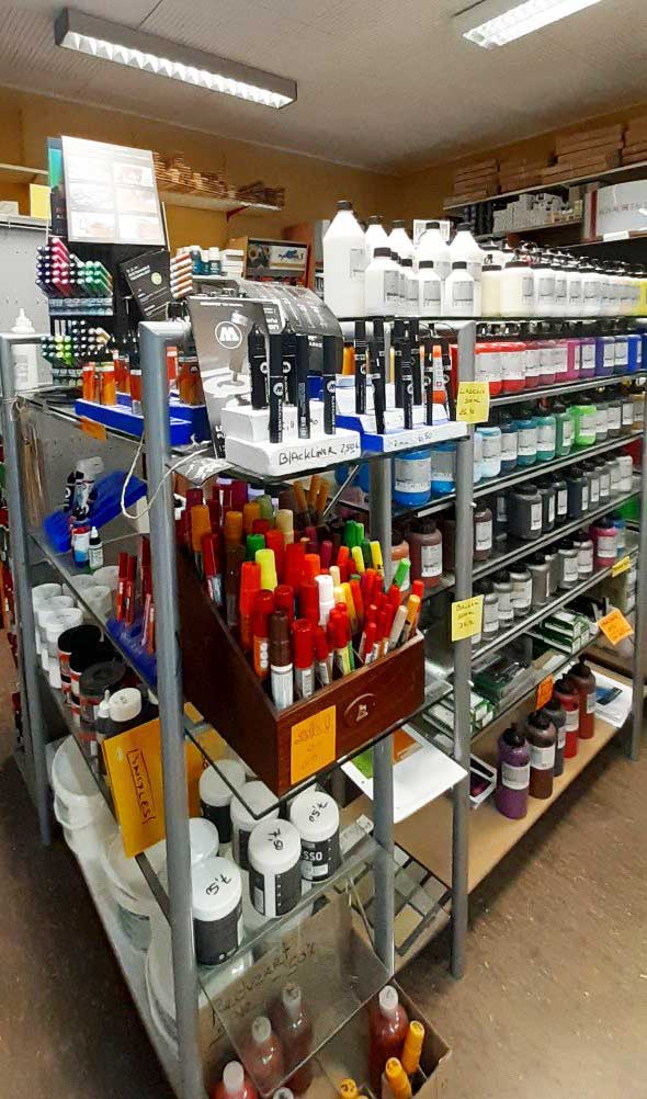 They have various quality oil paints, acrylics, pastels, color pigments, ink, cardboard, and all sorts of canvases from cotton to linen and the good thing is that they cut them for you. You don’t need to buy the whole roll.